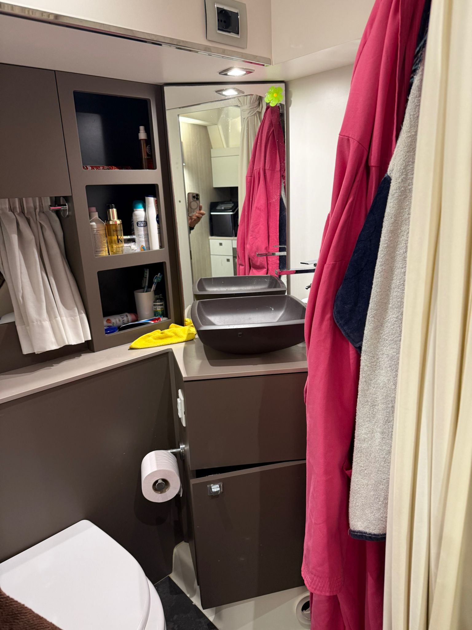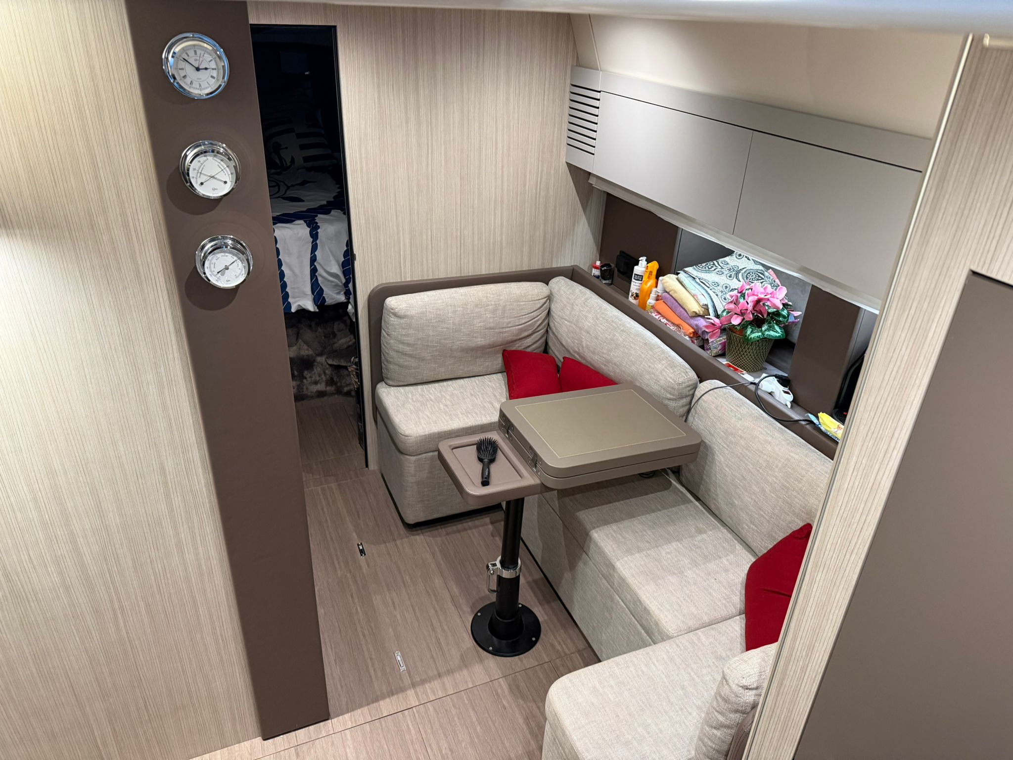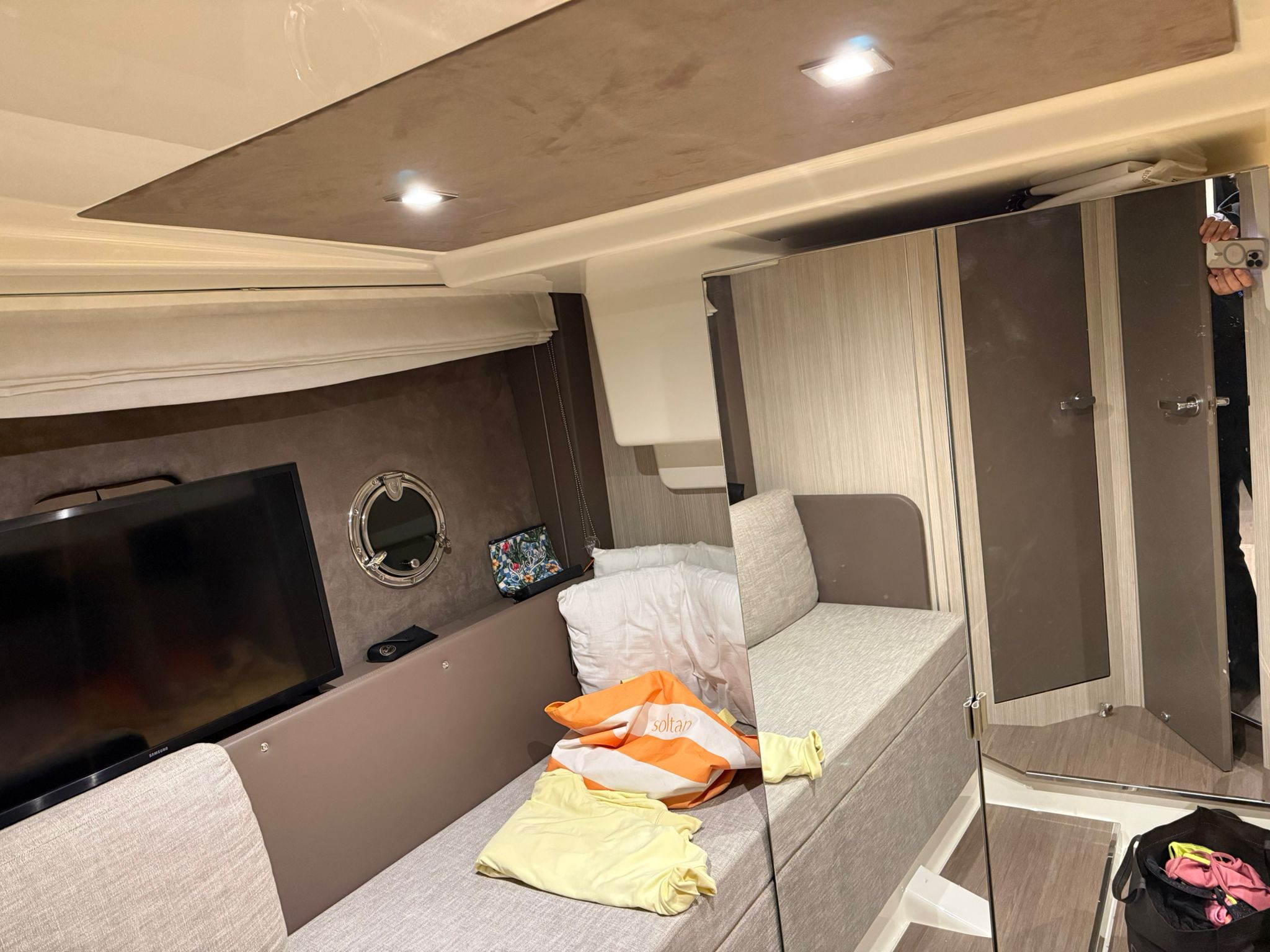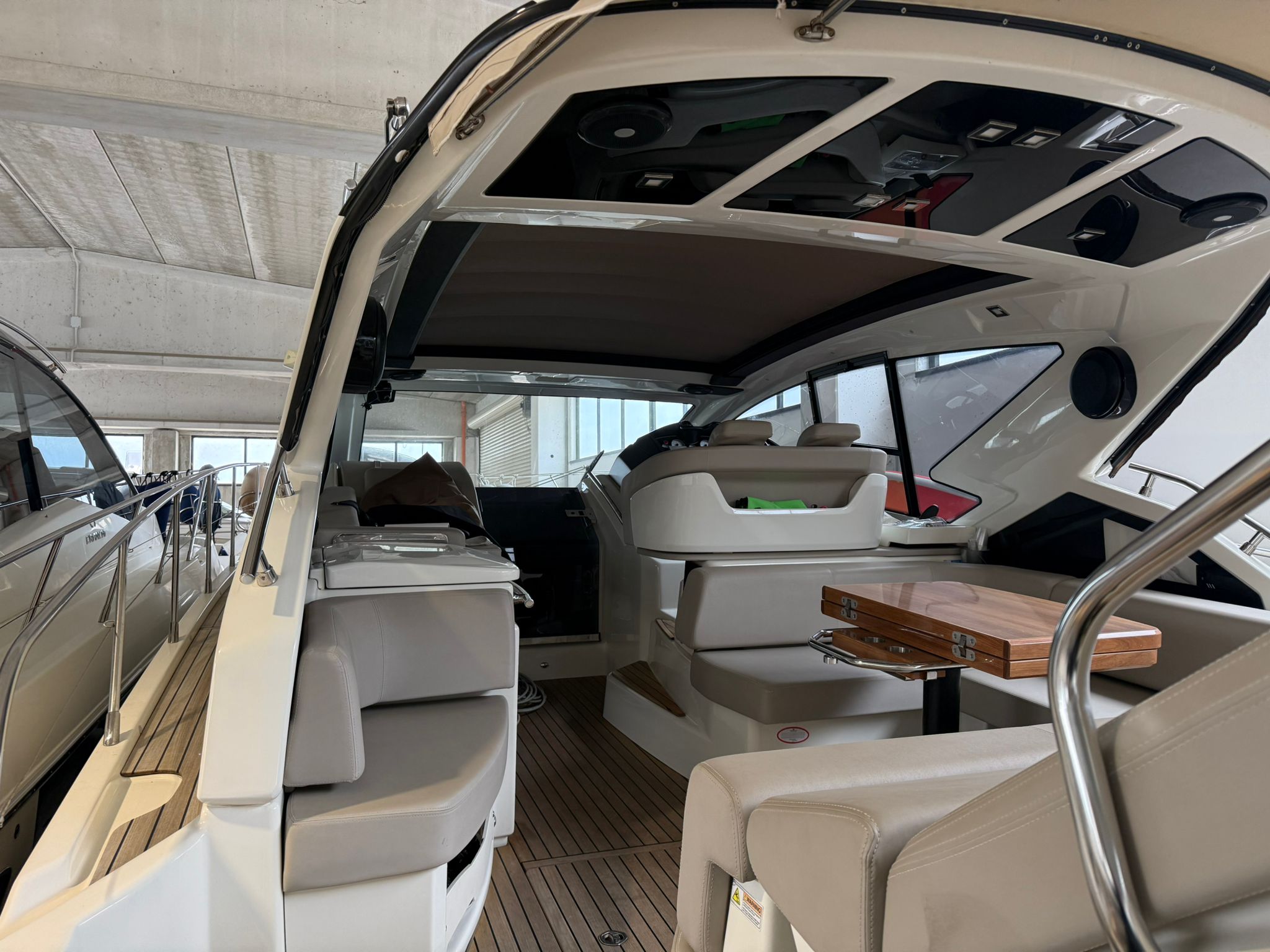 Barca Cranchi M44 con 2 motori Volvo Penta D6 EVC/E/DPI + joystick + trip computer + single lever + cruiser control + power trim assistance, anno 2022 con 457 ore. Gli optional presenti sono: impianto microaspirazione acqua, aria condizionata 16000 BTU con pompa di calore, capottina chiusura completa beige (alterantivo allo standard) , comandi al volante, elica di prua con estintore automatico, frigorifero pozzetto, GPS/chartplotter a colori Garmin 12″, cambio strumentazione da Raymarine a Garmin, grill elettrico mobile pozzetto (modifica mobile e grill come Z35), luci prua, n.3 luci subacquee, orologio barometro termoigrometro, oscurante completo verticale pozzetto+destro+sinistro microforato nero, passerella idraulica 3 stadi a scomparsa, pilota automatico Garmin, radio upgrade casse altoparlanti a prua e subwoofer, teak pozzetto, teak camminamento trincarini laterali, telecomando verricello con contametri integrato, VHF/DSC Garmin, copia certificato CE, tappezzeria esterna in silvertex, verniciatura hard top nero vulcano, verniciatura protettiva lucida per tavolo pozzetto in teak, immatricolazione, bimini top, materassi, moquette, oscuranti 100% sulle finestre in plexiglass della cappottina, moquette sui gradini entrata in cabina, lampade comodino personalizzate, aggiunta presa corrente 220V camera poppa, aggiunta mensola nel bagno, antiribalta, serratura porta cabina di poppa come bagni, presa 220V nel garage, daytona con altezza 15cm sotto chaiselounge.