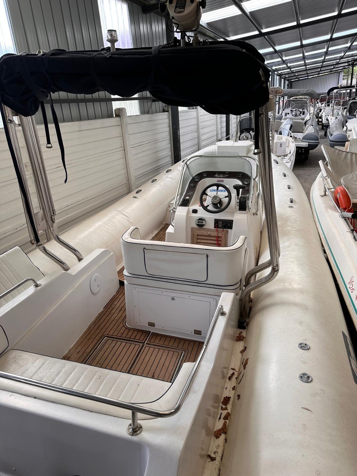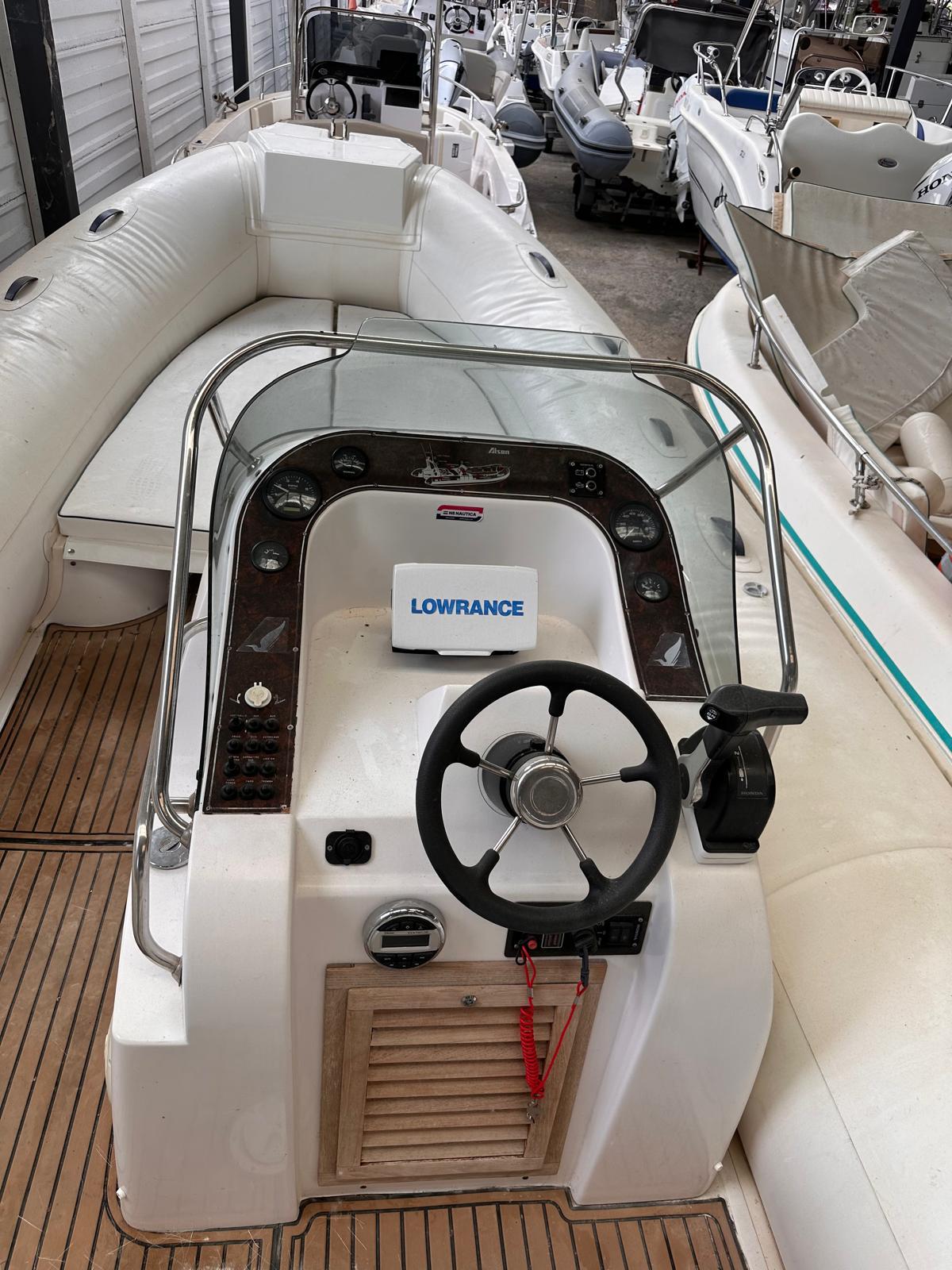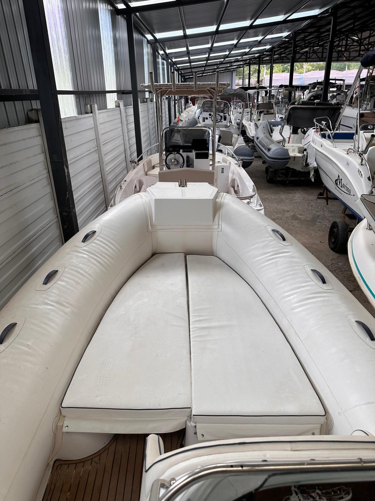 Gommone Alsone modello Flash 750, anno scafo 1998, tubolari rifatti nell’anno 2023, tappezzeria completa rifatta nel 2023. Il gommone è dotato di: rollbar in acciaio inox con tendalino doppia apertura, cerdeck completo, impianto stereo, impianto doccia.