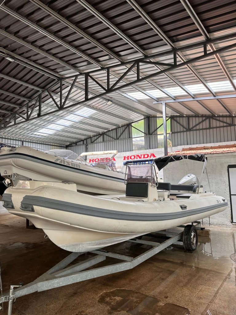 Gommon Joker Boat Clubman 24 con motore Honda BF 225 CV, tubolari rifatti nel 2024, tappezzeria completa rifatta nel 2024. Il gommone è dotato di tendalino con struttura 3 archi in acciaio inox, impianto stereo con n.2 altoparlanti, impianto doccia, impianto n.8 luci led di cortesia.