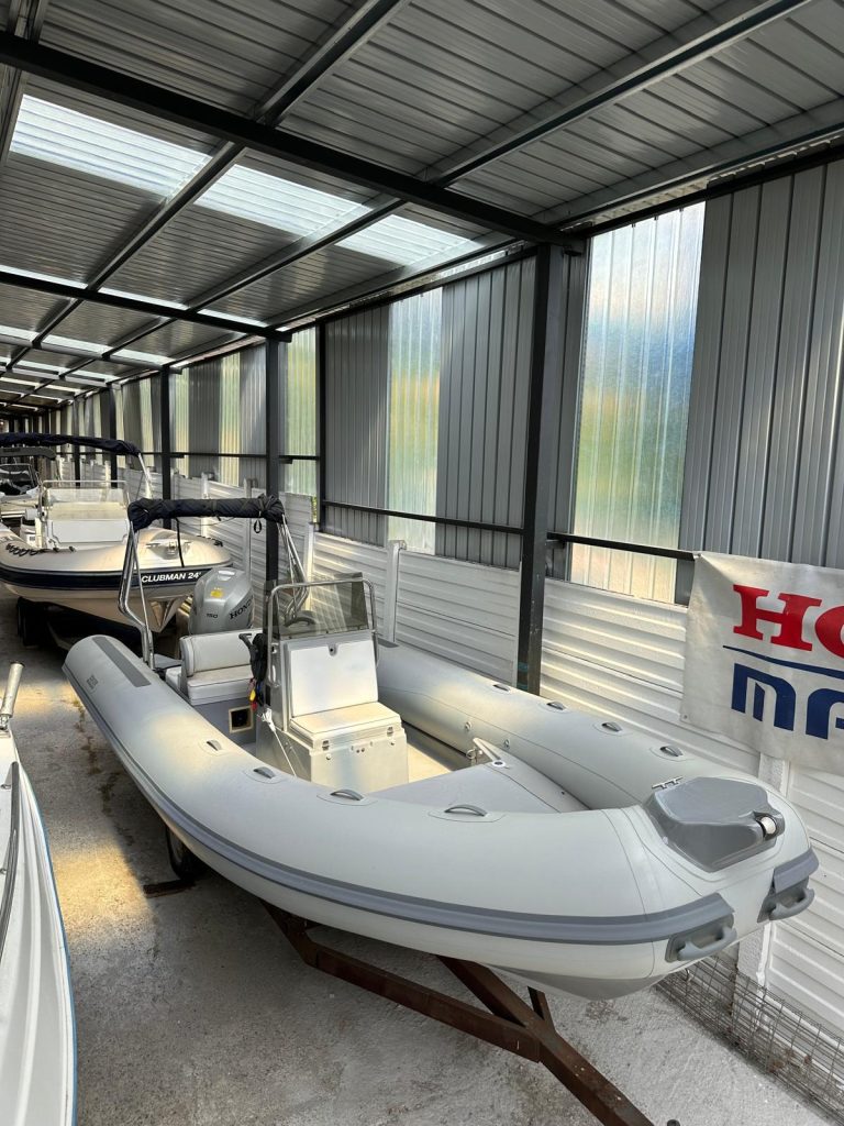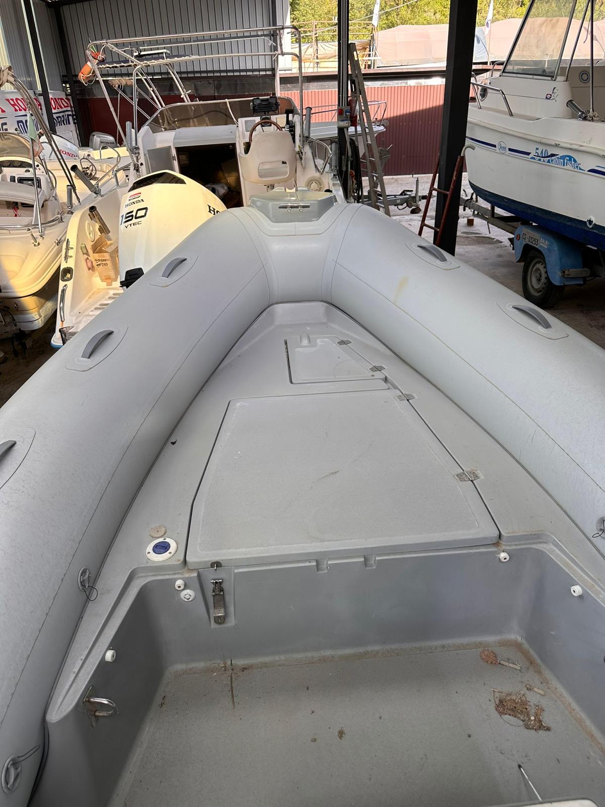 Gommone Joker Boat Clubman 21 con motore Honda BF 150 CV, tubolari rifatti nel 2025, tappezzeria completa rifatta nel 2024, Il gommone è dotato di tendalino inox con struttura rollbar inox, impianto stereo con n.2 altoparlanti, impianto doccia.